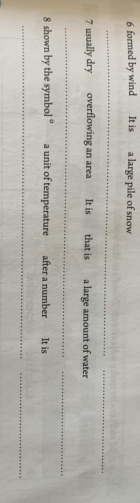 6. It is a large pile of snow formed by wind. - snowdrift