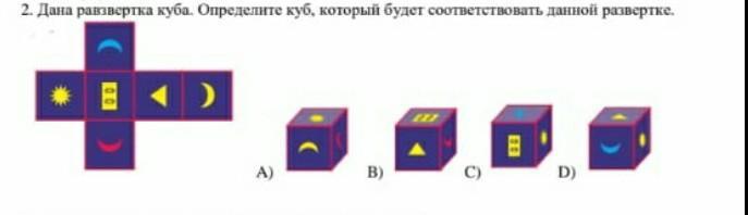 треугольник вверх смотрит, значит на вверхней стороне желтый квадрат. а с боку. красный значок маленький. все подходит. поэтому В.