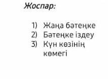 жоспар: 1)жана бәтенке 2)бәтенке іздеу 3)күннің көзіңін көмегі
