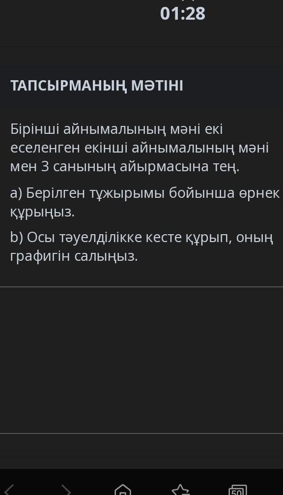 б) Построить график. График линейной функции, прямая линия. Придать значения х, подставить в уравнение, вычислить у, записать в таблицу. Для построения прямой достаточно двух точек, для точности построения определить три.