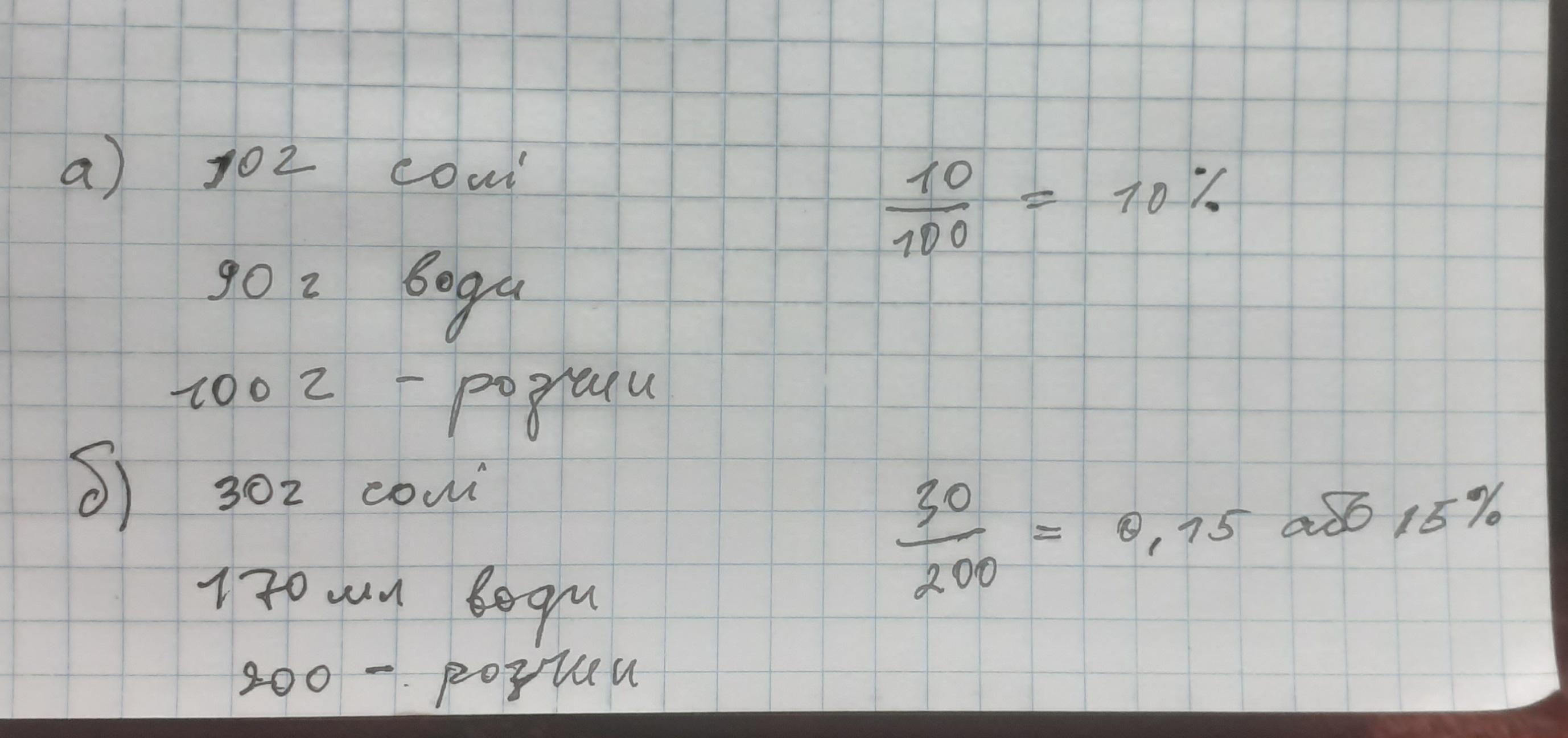 а) 100 г 10%-го розчину; б) 200 г 15%-го розчину.