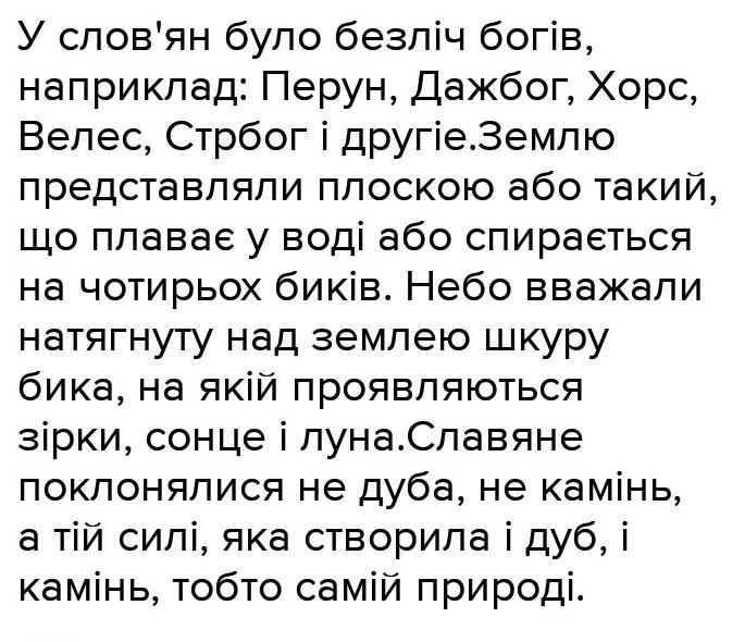 Уявіть, що вам вдалося побувати в поселенні давніх слов’ян. Користуючись текстом підручника та додатковими матеріалами, напишіть розповідь-репортаж за темою «Вірування давніх слов’ян». Вкажіть, кого обожнювали давні слов’яни, як вони поклоняли своїм богам, які уявлення мали про навколишній світ.