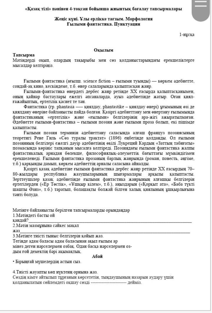 1. мәтіндегі басты ой ғылым