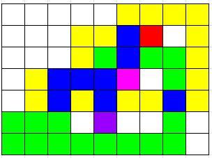 Во вложении наглядно представлен маршрут, по которому двигался Робот, выполняя программу. Красным обозначена стартовая клетка, розовым — та, в которой Исполнитель закончил выполнять систему команд первый раз и начал второй, фиолетовым — финишная клетка. Еще два цвета использованы для раскраски клеток, в которых Робот побывал по разу, выполняя систему команд первый (желтым) и второй (зеленым) раз. Наконец, в синих клетках Исполнитель очутился несколько раз. Их 8, чем и интересовались составители задачки