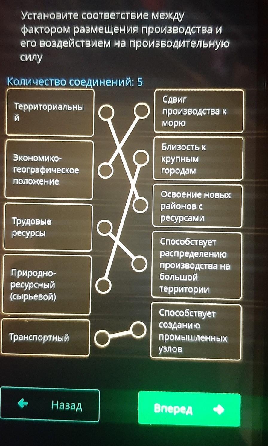 Установите соответствие между фактором размещения производства и его воздействие на производительную силу