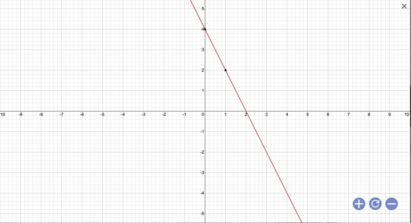 Построим прямую с помощью углового коэффициента и пересечения с осью Y или опираясь на две точки.