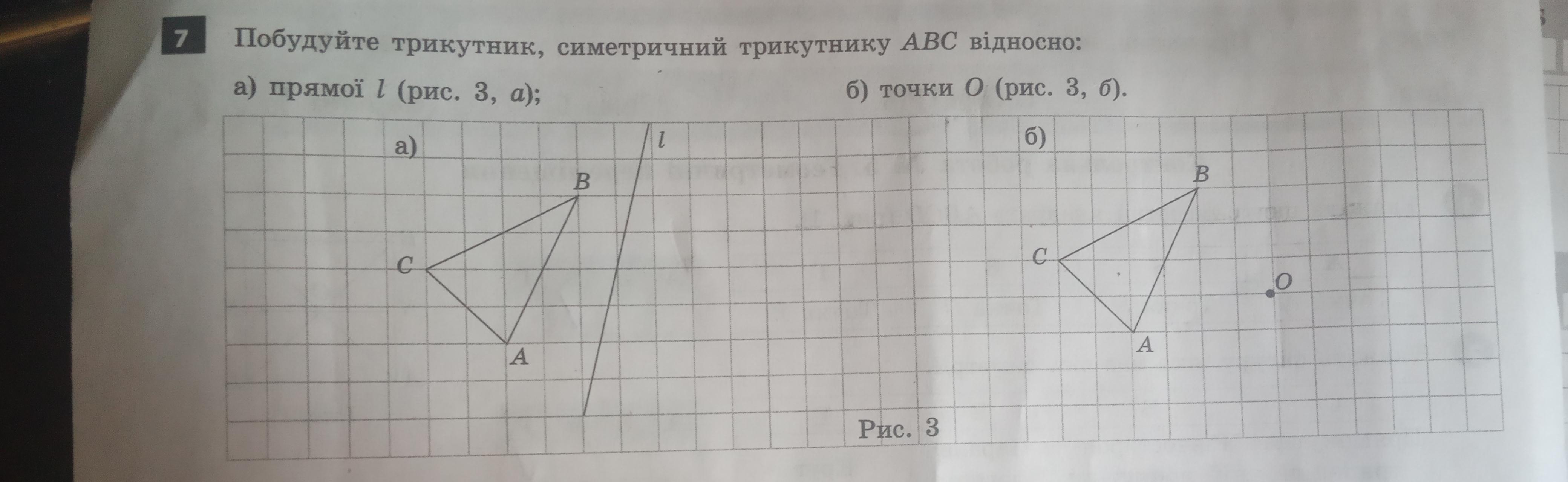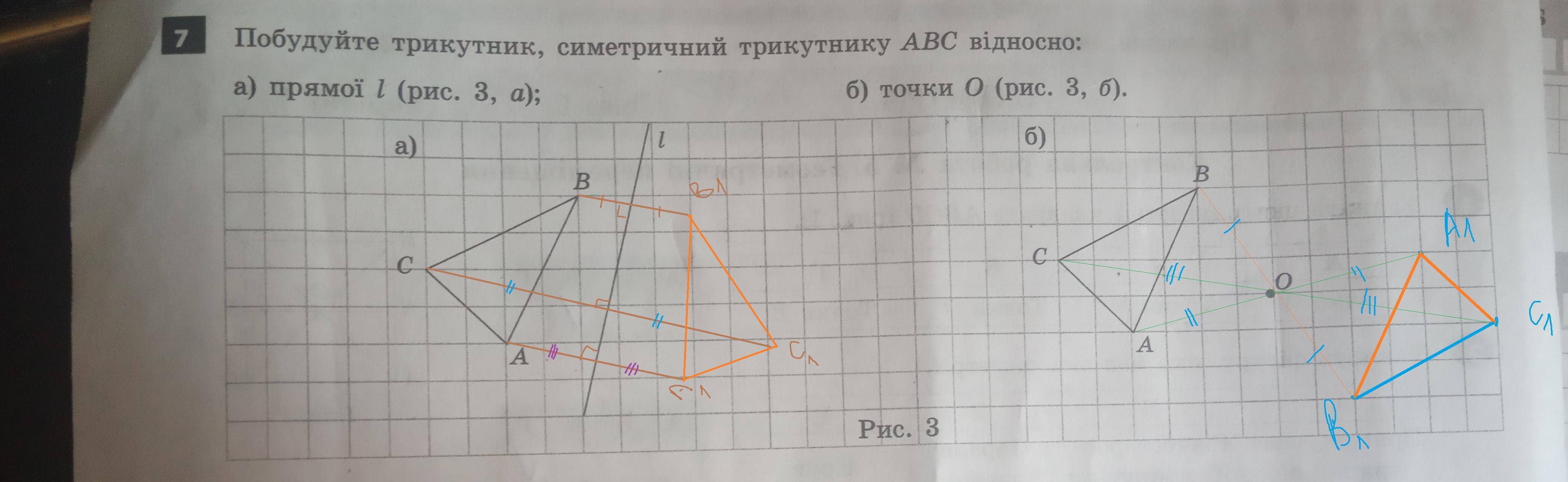 на першому малюнку проводимо з точок перепендикуляри до прямої, а потім відкладаємо рівні відстані по другу сторону перпендикулярів.