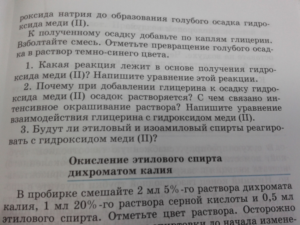 Образуется глицерат меди темно синего окрашивания и идет при этом растворение осадка Сu(OH)2