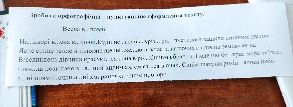 Надворі весна вповні. куди не глянь- скрізь розпустилося, зацвіло пишним цвітом. ясне сонце, тепле й приязне, ще не веліло покласти палючих слідів на землю: як на великдень дівчина, красується вона в розкішнім вбранні. поле - що безкрає море: скільки глянеш - розіслано зелений килим, аж сміється в очах. синім шатром розіп'ялося небо- ані пляминочки, ані хмариночки, чисте, прозоре. з неба, як розтоплене золото, ллється на землю блискуче світло сонця; на ланах грає сонячна легенький вітерець подихає з теплого краю, перебігає з нивки на нивку, живить, освіжає кожну билину. і ведуть вони між собою таємну розмову, чутно тільки шелест жита-травиці а згори лине жайворонкова пісня: голос, як срібний дзвіночок, тремтить, переливається, застигає в повітрі перериває його перепелячий крик, заглушає сюрчання трав'яних коників-і все те зливаєТься докупи в чудний гомін, вривається в душу, розбуркує в ній добрість, ширістн дюбов до гарно тобі любовесело! на серці стихають негоди, надія обгортає тебе добрими думками, бажаннями. хочеться самому жити и любити, бажаєш кожному щастя.