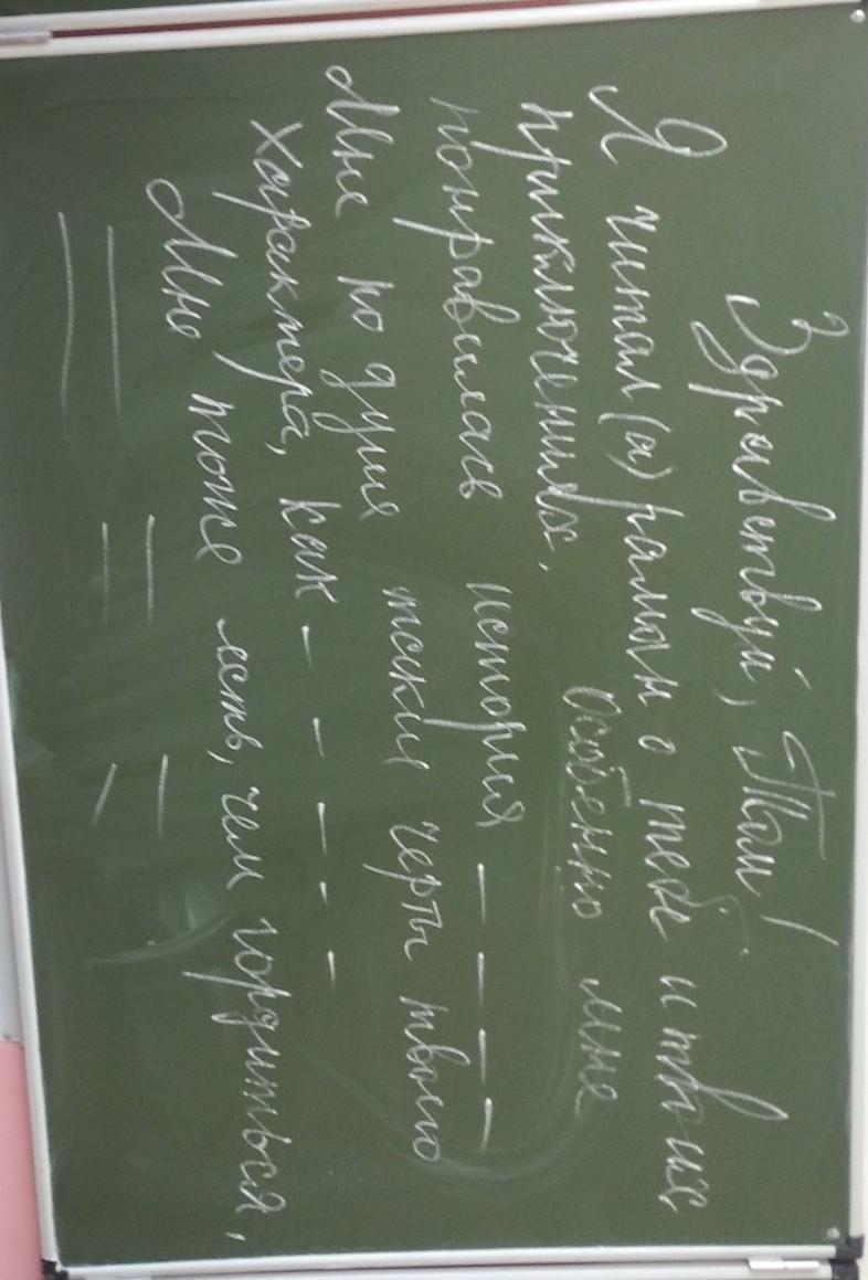 Я читала роман о тебе и твоих приключениях. Особенно мне понравилась история _____ . Мне по душе такие черты твоего характера, как _____ . Мне тоже есть, чем гордиться ______ .