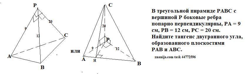 попарно перпендикулярны, PA = 9 см, PB = 12 см, PC = 20 см.