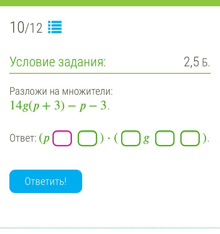 Ответ: (p+3)*(14g-1)
