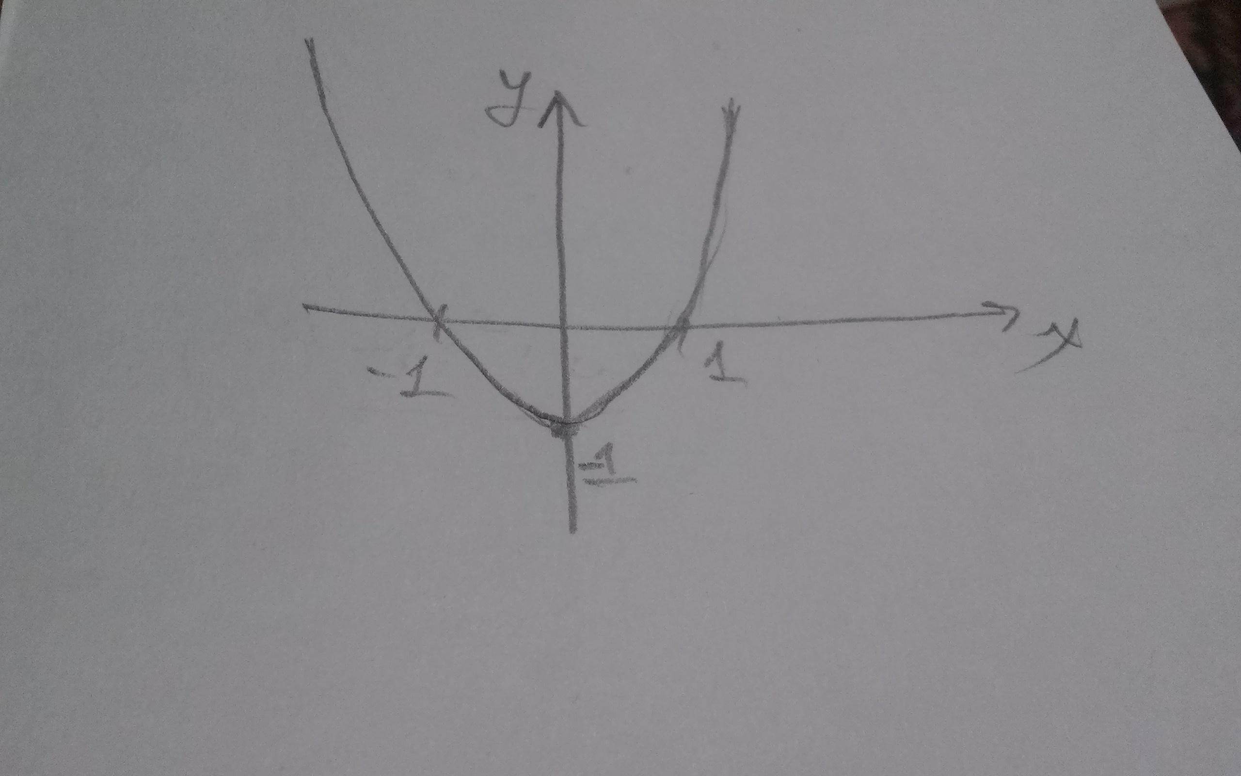 График х^2-1 есть парабола х^2, опущенная на единицу вниз, вершина в точке (0,-1) и прлходит через точки (1;0), (-1;0), (2;3), (-2;3)