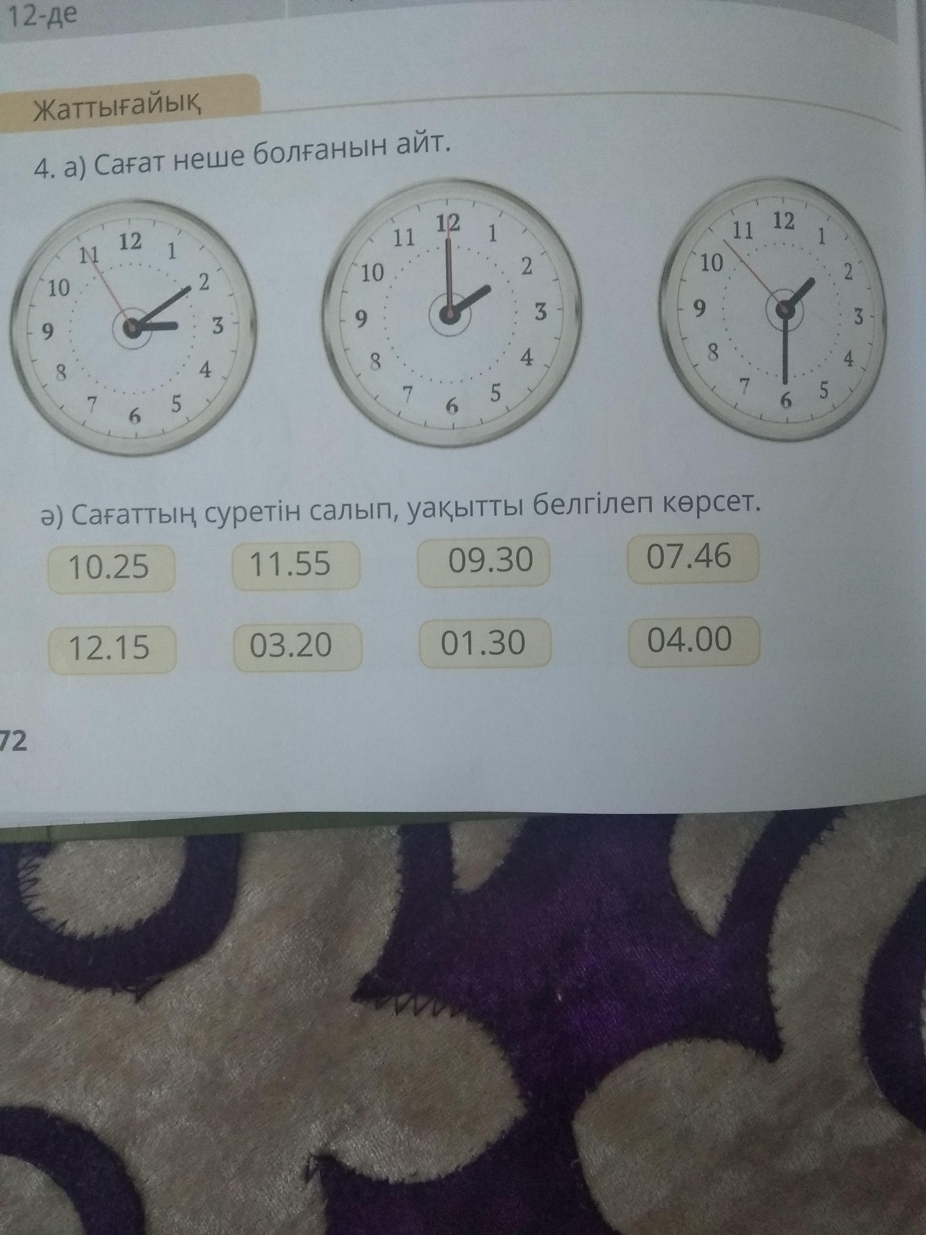 И номер ә) Сағаттың суретін салып, уақытты белгілеп көрсет.
