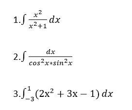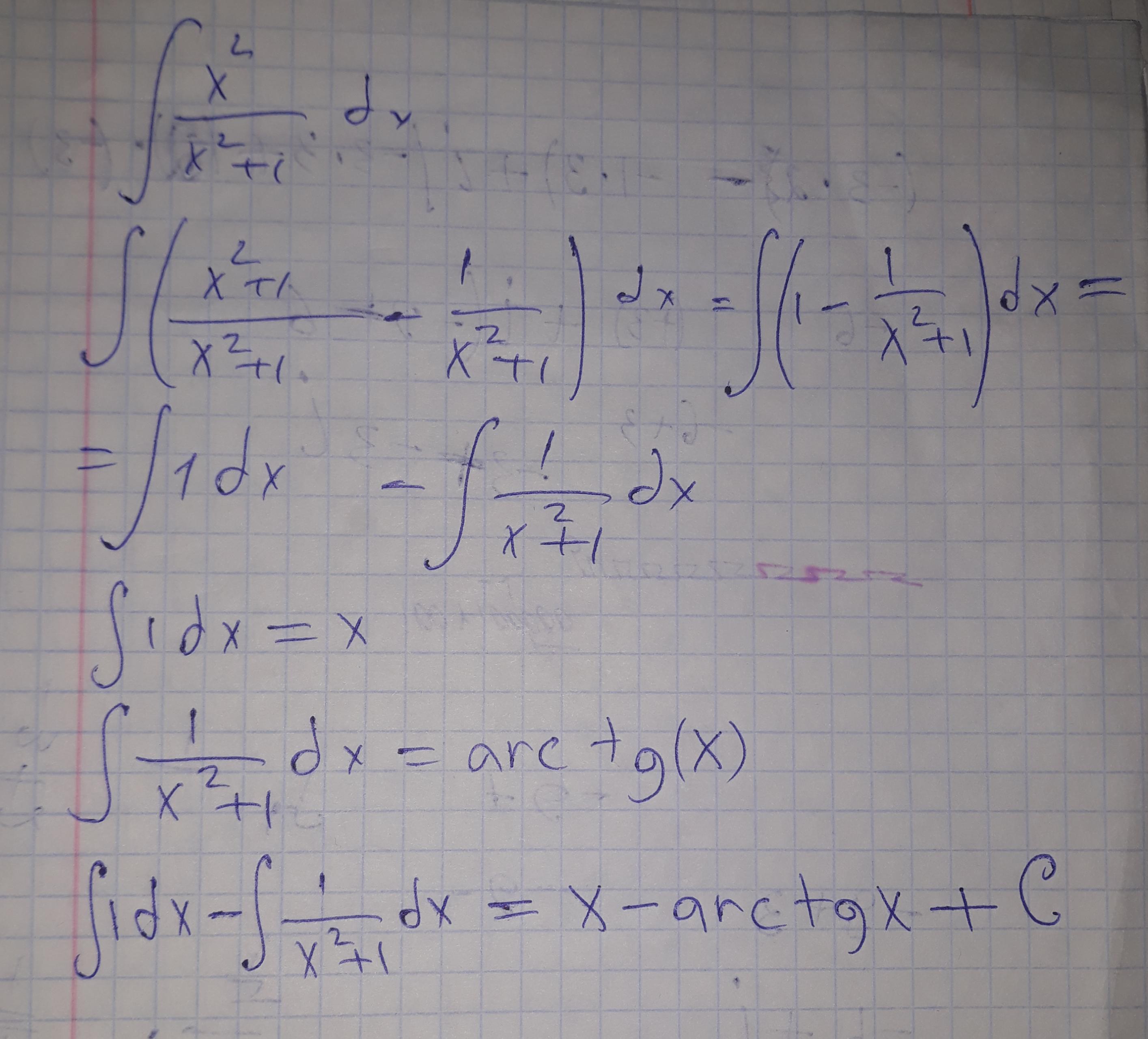 1 ) ∫ [x²/( x² + 1 ) ]dx = ∫ ( 1 - 1/ ( x² + 1 ) )dx = x -arctgx + C ;