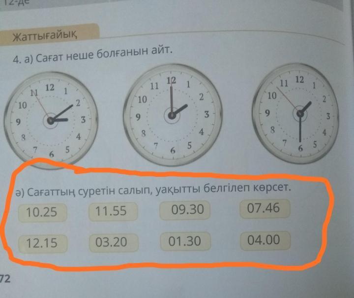 Сағатын суретің салып соның тілін сондай қыласын.1 дейсінде Сағатын суреттін салып 10:25 белгілейсін .