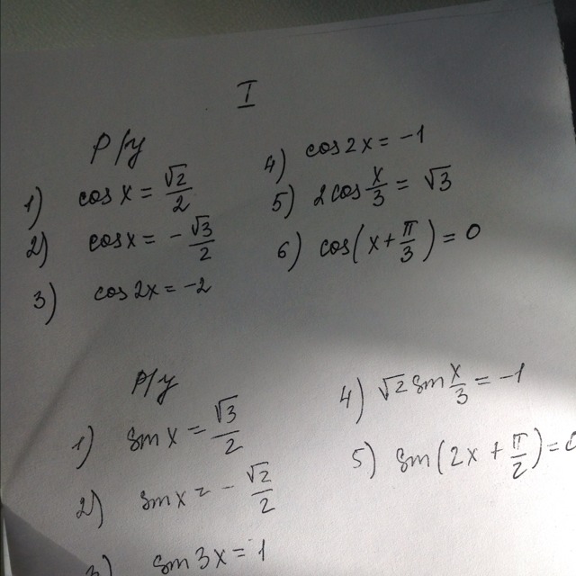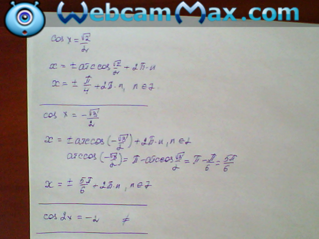 1. 2сosx=|/2cosx=|/2 / 2x=+-arccos |/2 / 2 +2Пs, sЄZx=+-П/4+2Пs, sЄZОтвет:+-П/4+2Пs, sЄZ