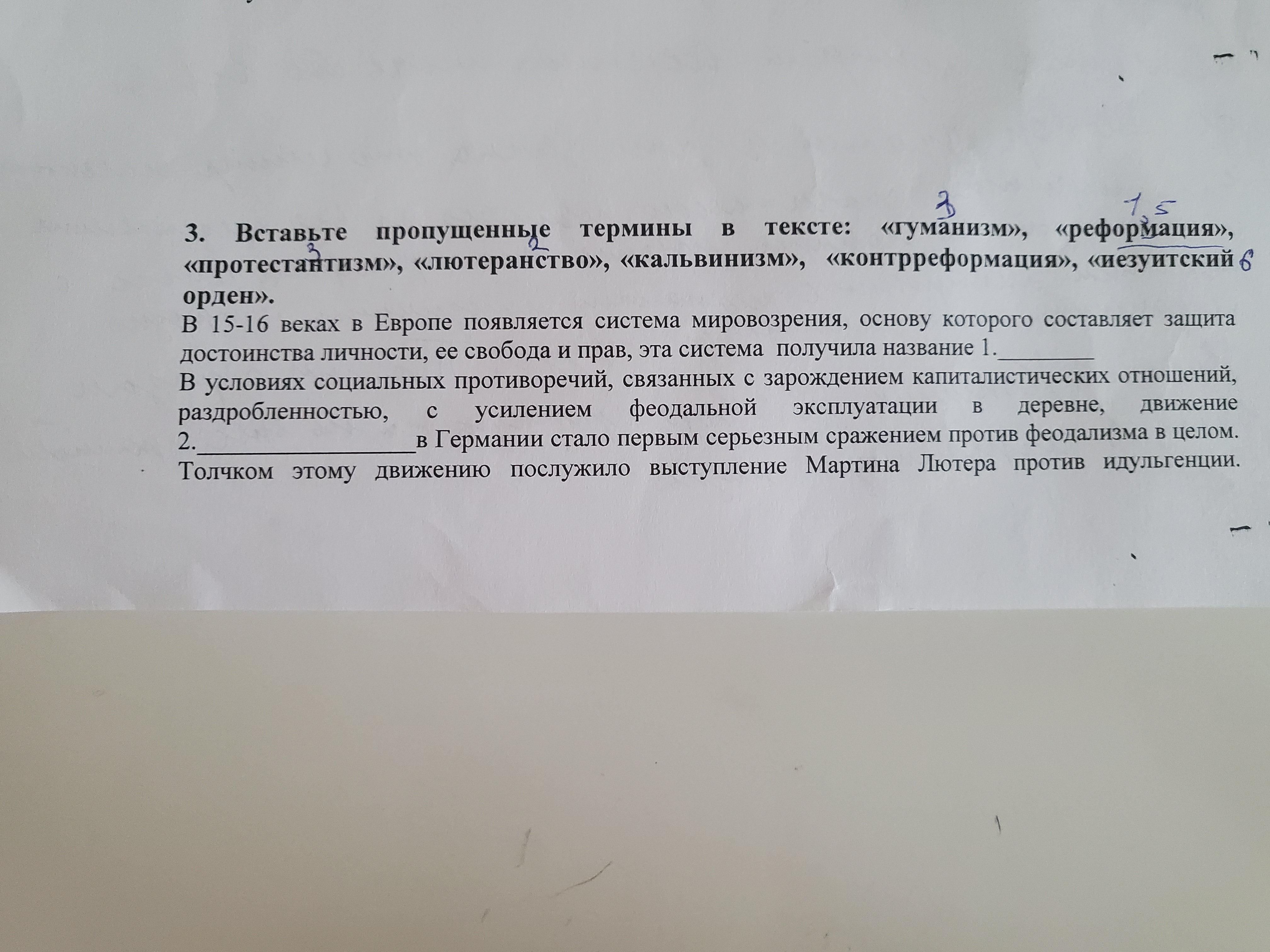 1 гуманизм, 2 реформация 3 протестантизм 4 иезыутский орден 5 контрефформация 6 лютеранство