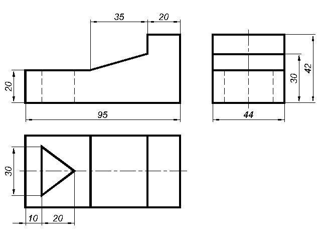 1 задание. В тетради, на отдельном листе, начертить три проекции и проставить размеры.