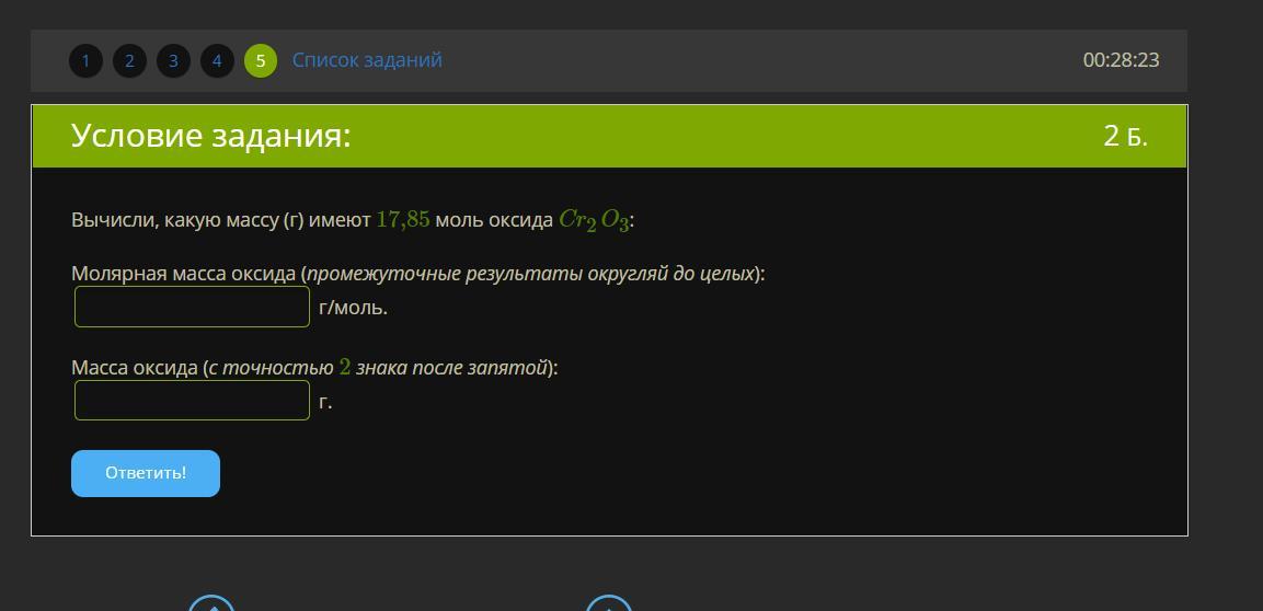 М(Cr2O3) = 52*2 + 16*3 =152 г/моль
