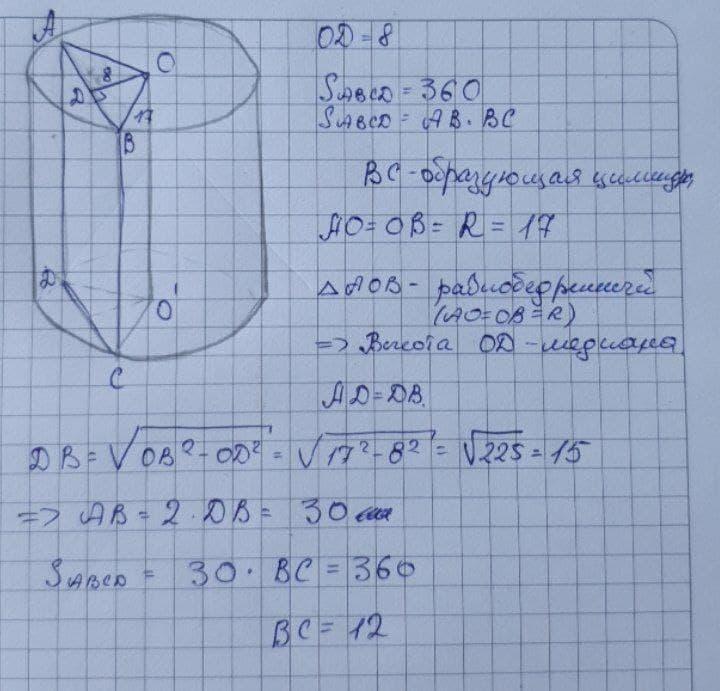 Образующая цилиндра – перпендикуляр, проведенный из точки границы одного основания к другому основанию. Образующая и высота цилиндра равны друг другу.