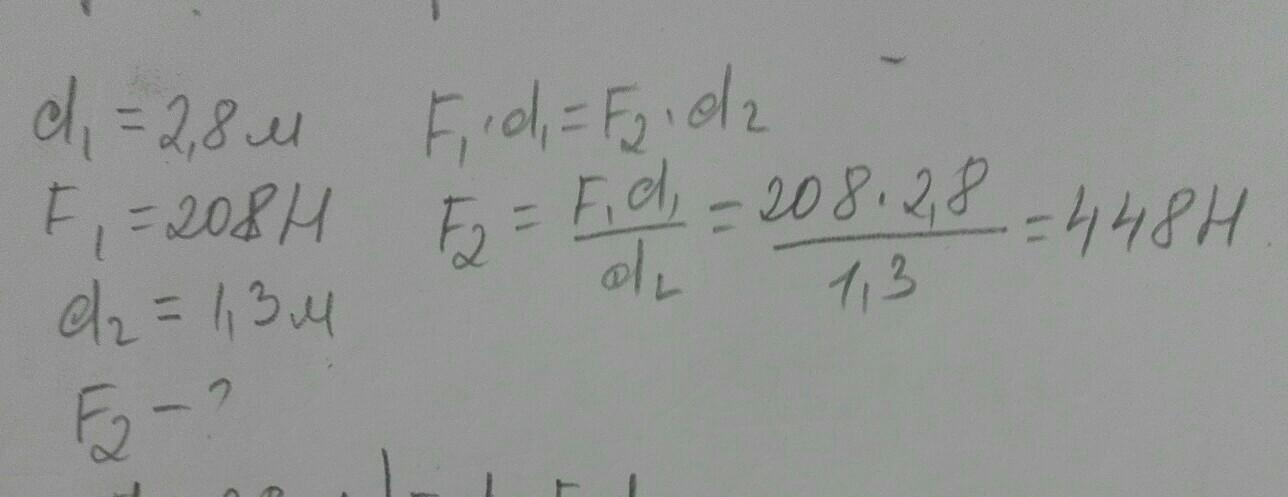 Катя сидит на расстоянии 2,3 метров от точки опоры качелей A, а Коля — на расстоянии 1,3 м. Сколько весит Коля, если Катя весит 208 Н, а качели находятся в равновесии?