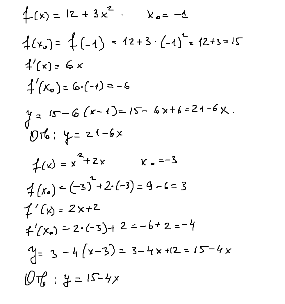 1) напишите уравнение касательной к графику функции f(x)=12x+3^2, проведенной через точку с абциссой х0=-1