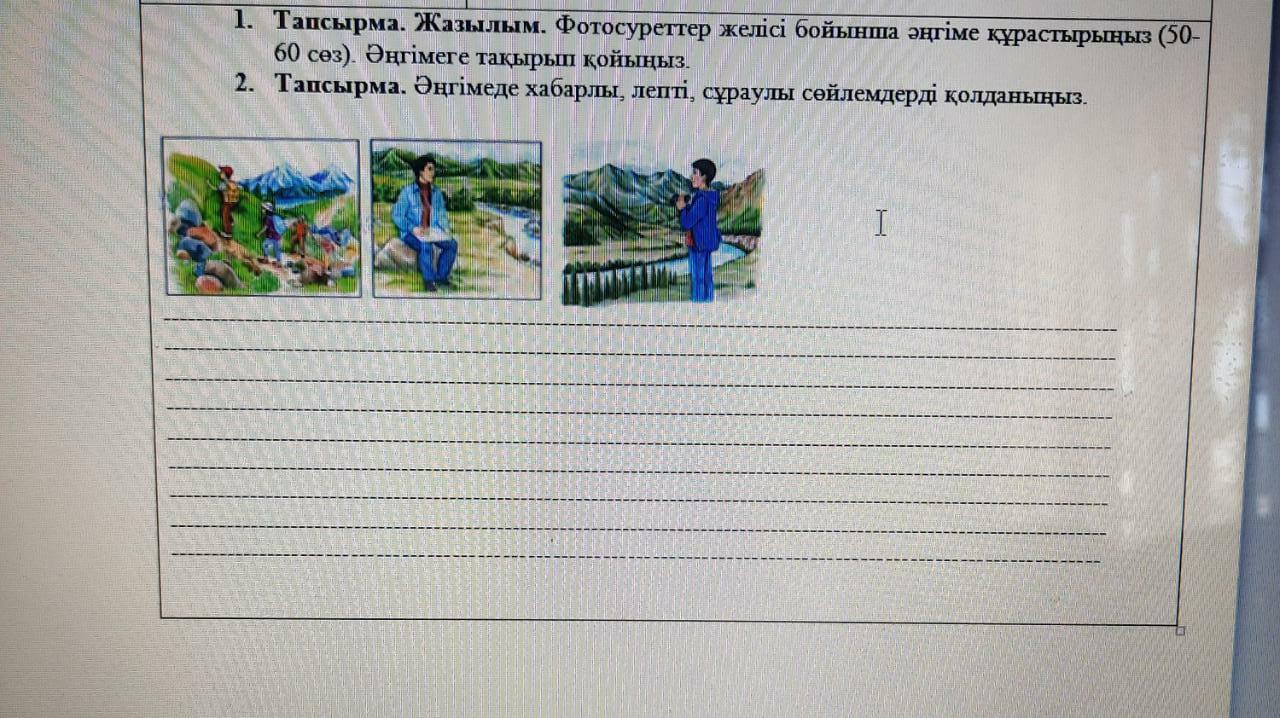 1сурет :Балаллар қайда барды ?Балалар тауға барды .Тауда не істеді?Демалды