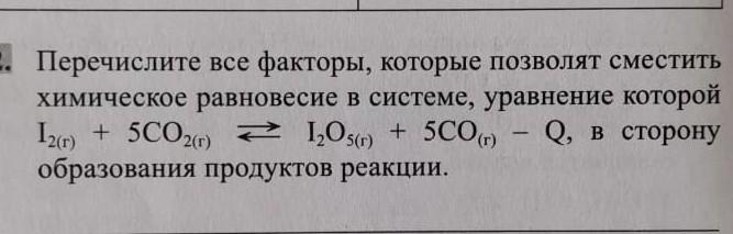 Перечислите все факторы, которые позволят совместить химическое равновесие в системе уравнение которой
