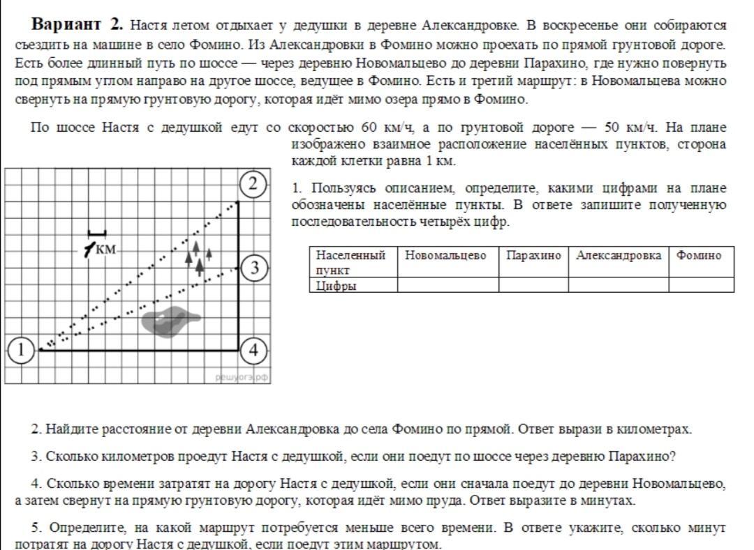 Проселочная дорога от 2 до 1 = 13 км (по и.Пифагора)