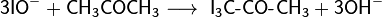 При взаимодействии ацетона с раствором йода в щелочной среде образуется трииодметан (йодоформ):