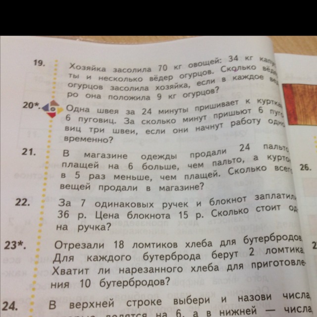 1) 24+6=30 плащей; 2) 30:5=6 курток; 3) 24+30+6=60 вещей всего