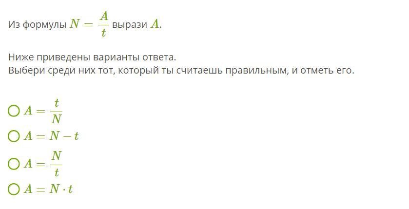 Из формулы N=At вырази A.