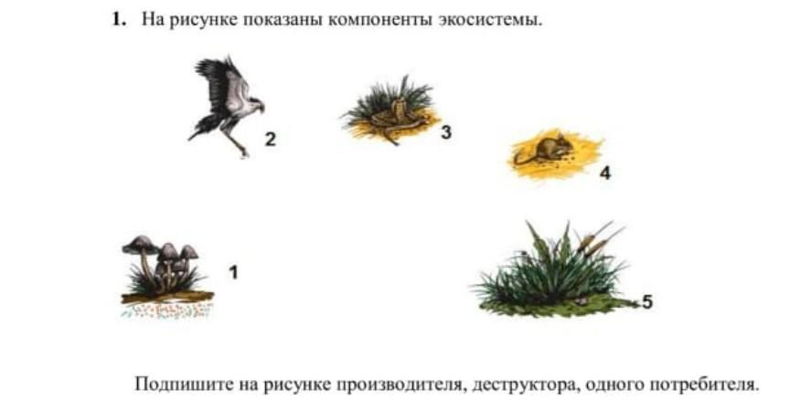 Объяснение:производители это 5, растения,деструкторы это 1 грибы, 2, 3 и 4 потребители