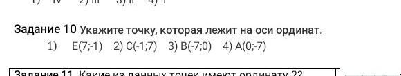 Пошаговое объяснение: Если точка лежит на оси ординат, то есть Оу, то у неё по оси абсцисс 0. Единственный подходящий вариант - 4.