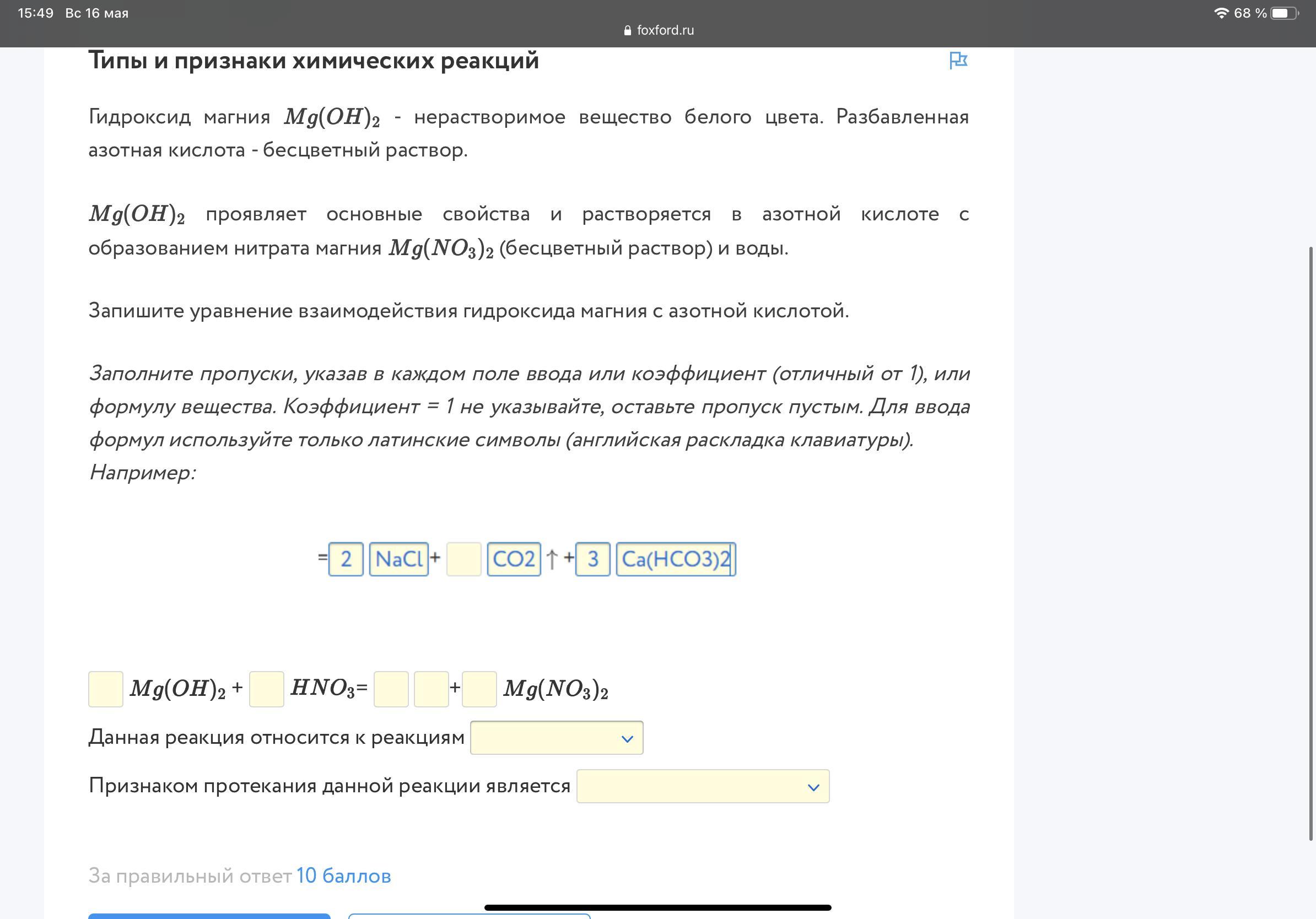 признак реакции:осадок/слабый электролит (смотря что есть в таблице ответов)