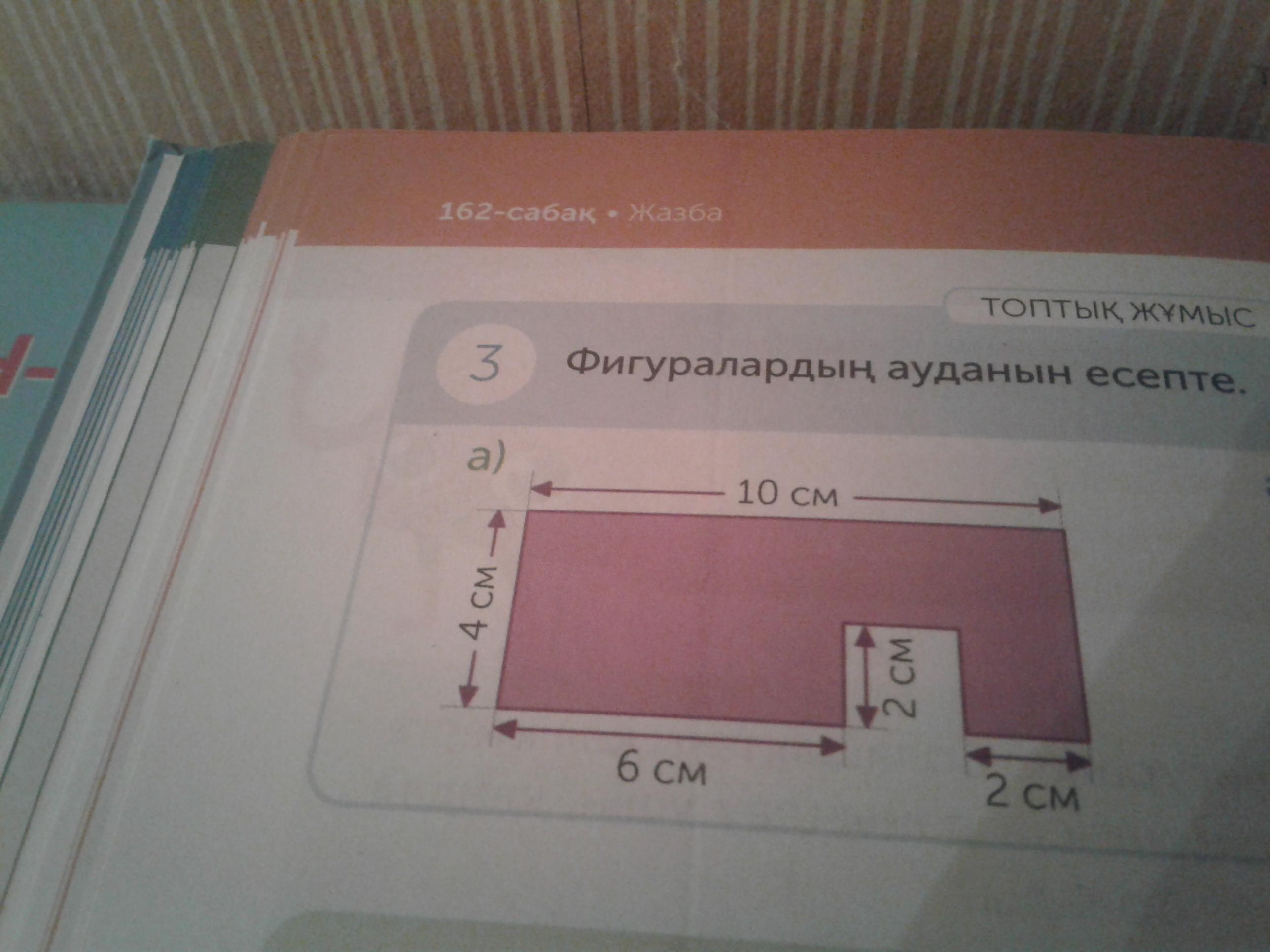 фигуру разделим на три фигуры: прямоугольник А 4 на 6 см; прямоугольник В 2 на 4 см и квадрат С со стороной 2.