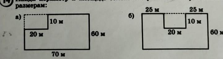б) разделим фигуру на три прямоугольника : прямоугольник А 70 на 50 и два прямоугольника В 25 на 10.