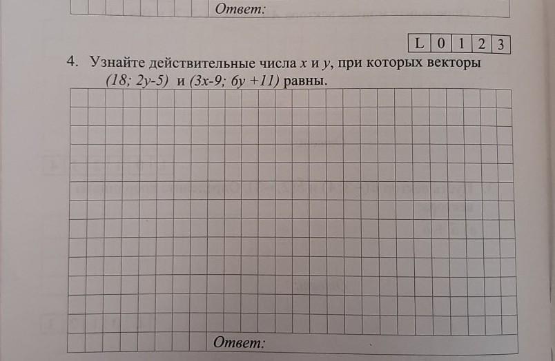 Ответ: векторы равны при х=9 и у=-4