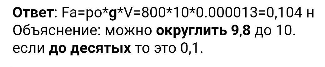 Fa=800*9,8*0,000013=0,10192Н=101,92мН