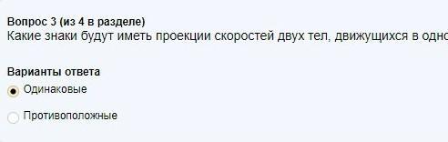 КАКИЕ ЗНАКИ БУДУТ ИМЕТЬ ПРОЕКЦИИ СКОРОСТЕЙ ДВУХ ТЕЛ, ДВИЖУЩИХСЯ В ОДНОМ НАПРАВЛЕНИИ