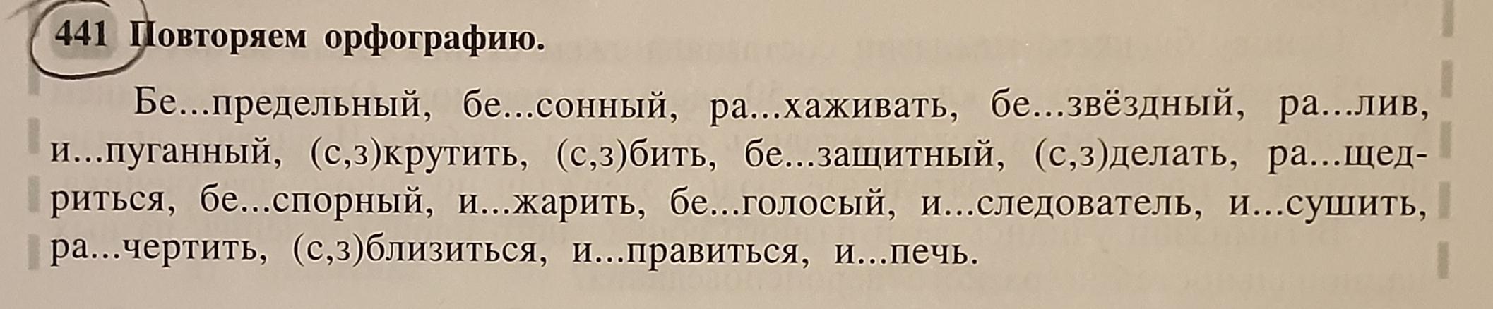 Беспредельный, бессонный, расхаживать, беззвёздный, разлив, испуганный, скрутить, сбить, беззащитный, сделать, расщедриться, бесспорный, изжарить, безголосый, исследователь, иссушить, расчертить, сблизиться, исправиться, испечь.