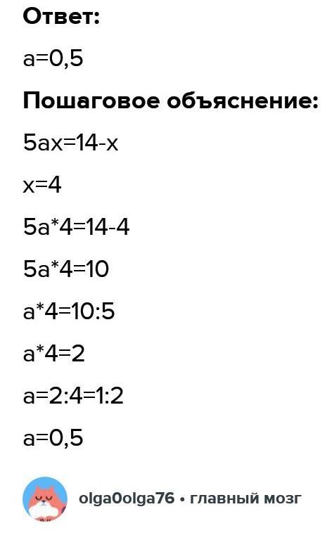 При каком значении числа а уравнение 5ax = 14 -х имеет корень, равный 4?