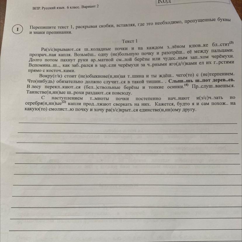 Перепишите текст 1, раскрывая скобки, вставляя, где это необходимо, пропущенные буквы