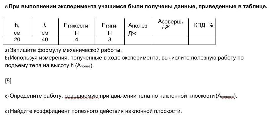 c) Определите работу, совешаемую при движении тела по наклонной плоскости (Aсоверш).