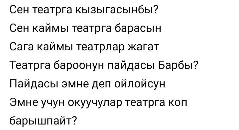 пожалуйста помогите по кыргызскому языку 7 класс, там короче надо отвечать на вопросы и всё