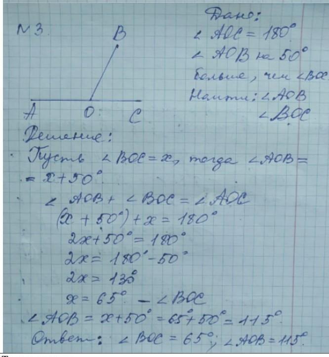 найдите угол АОВ и ВОС, если угол АОВ на 30° меньше, чем угол ВОС, а угол АОС- развернутые. напишите решение на бумаге и прикрепите его в ответ