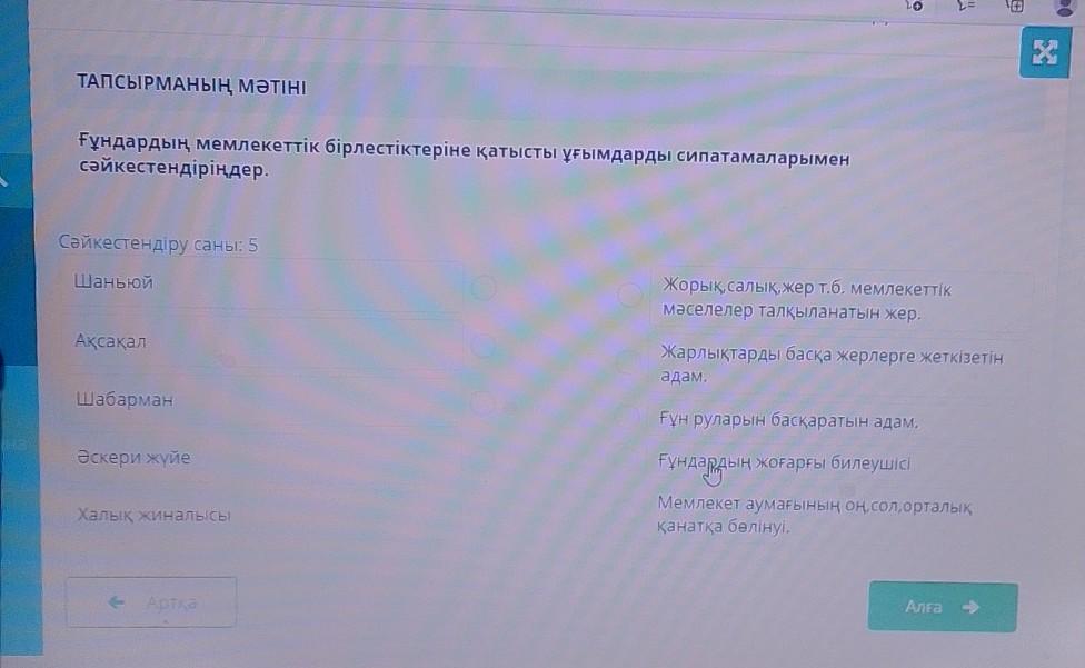 Ғұндардың мемлекеттік бірлестіктеріне қатысты ұғымдарды сипатамаларымен