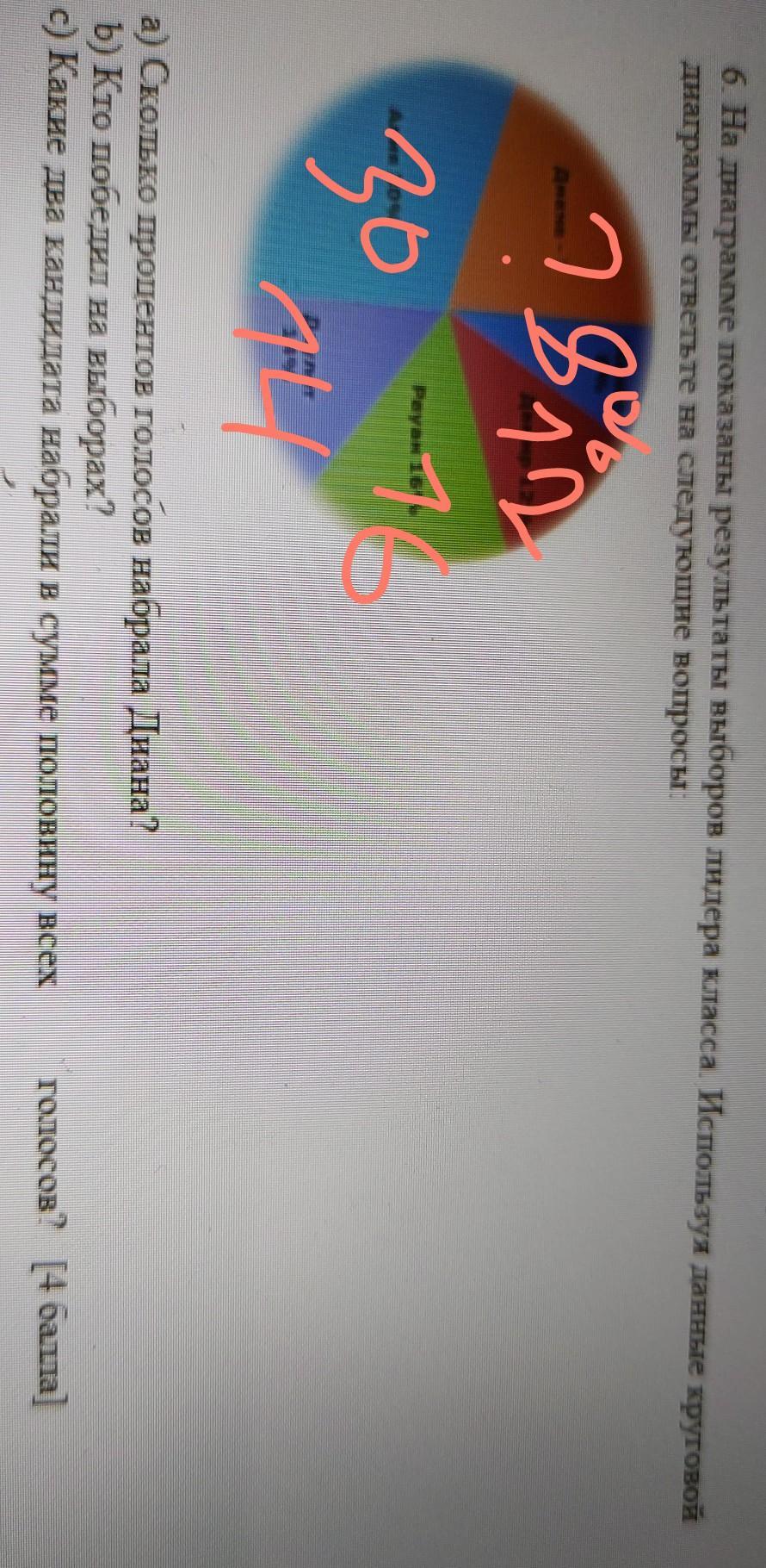 6. На днaграмме показаны результаты выборов лидера класса. Используя данные круговой