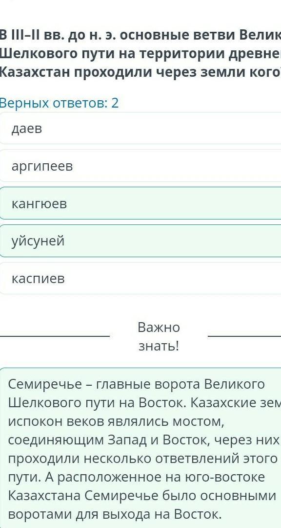 каспиев B) кангюев С) даев D) уйсуней Е) аргипеев
